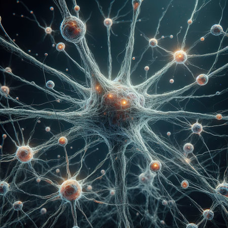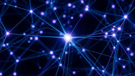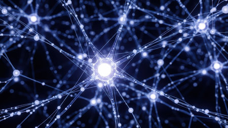 A visually striking abstract representation of neural pathways or a digital network with luminous nodes and lines, illustrating concepts of communication, science, and innovation.