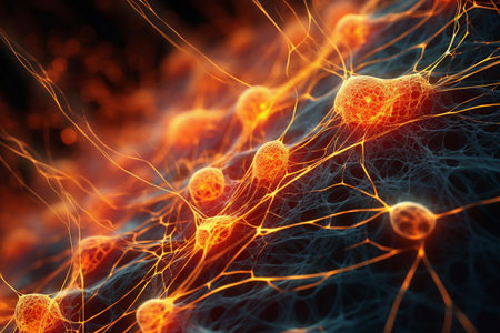 Glowing nerve cells in futuristic space backdrop generated by artificial intelligence