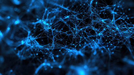 Evocative abstract image displays a vibrant blue network, representing artificial intelligence, neural connections, and complex systems. Excellent for technological and scientific projects.