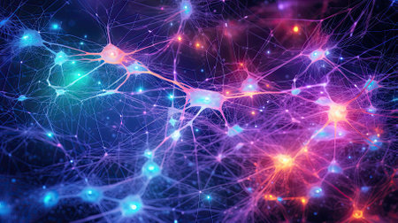 Intricate neural pathways illuminated with vibrant connections showcasing science and technology