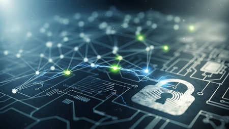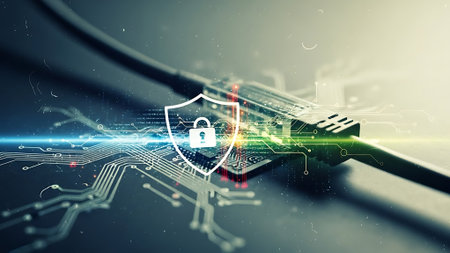 This image showcases a detailed view of a digital circuit board featuring a glowing lock symbol, representing the essential concept of cybersecurity and data protection in technology.