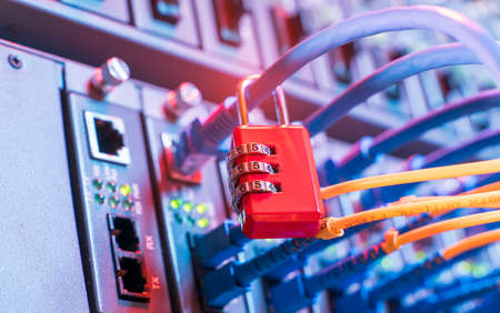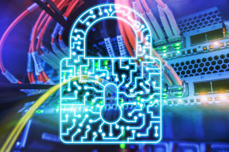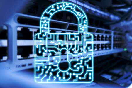 network and data protection concept with padlock and switch