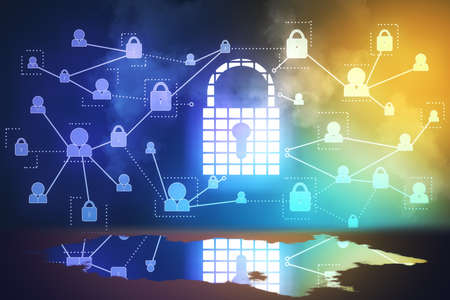 Cyber security and data protection concept. 3d rendering double exposure