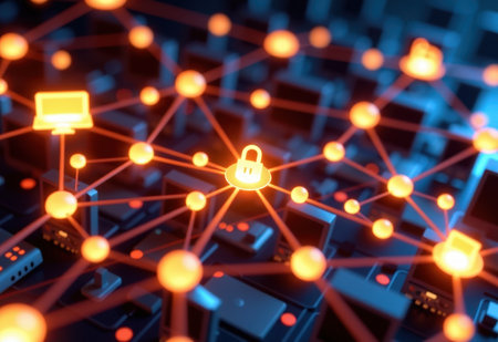 Secure network infrastructure with glowing padlocks symbolizing data protection and interconnected digital nodes ensuring reliable communication.