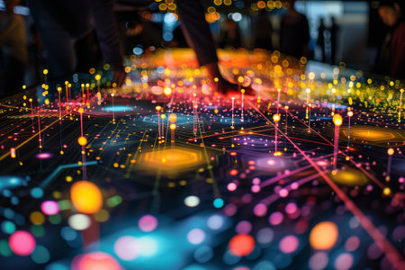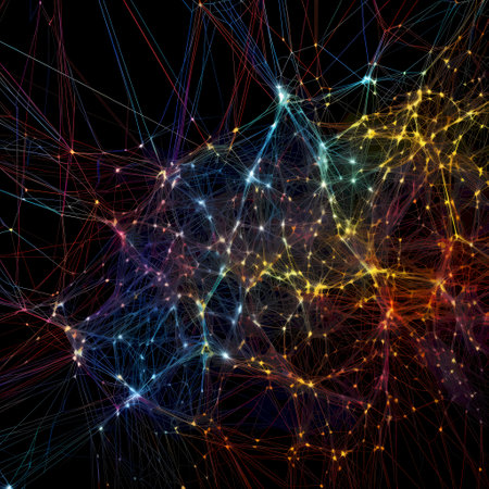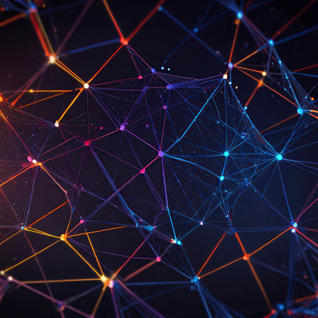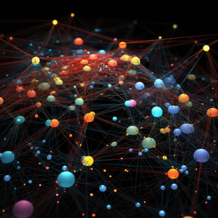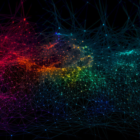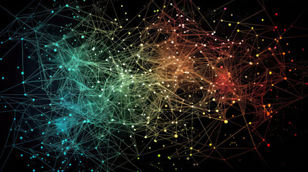 Explore a vibrant network of colorful nodes and illuminated lines representing digital connections. This abstract design captures the essence of communication and data flow.