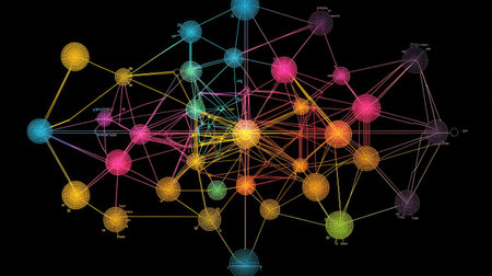 Vibrant abstract illustration featuring colorful spheres connected by intricate lines, representing complexity in relationships and communication within a modern network concept.