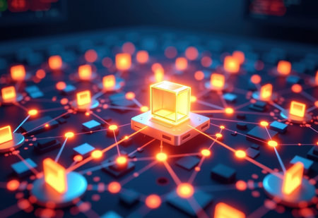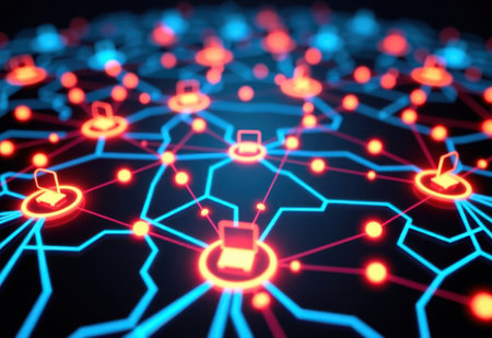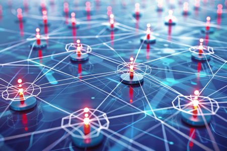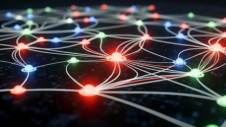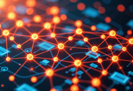 This abstract image showcases a digital network with glowing nodes and interconnected lines, creating a beautiful representation of connectivity in technology.