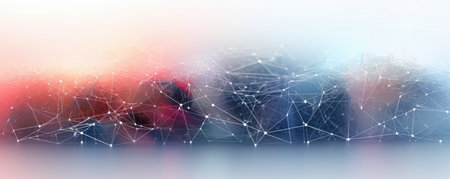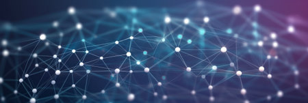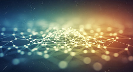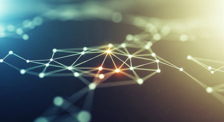 Visual representation of interconnected nodes and lines showing the complexity of digital networks and real-time data exchange in technology today.