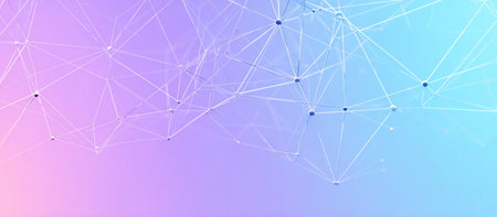 Abstract illustration of interconnected nodes and lines against a pastel gradient backdrop
