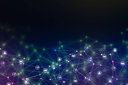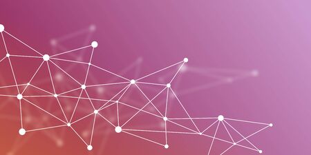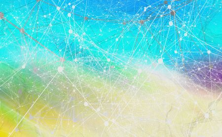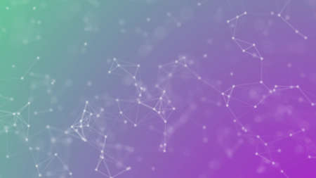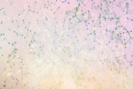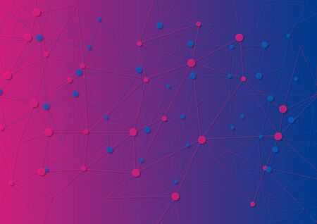 Creative abstract blockchain network with connected dots on a colorful duotone background. Global world network and communication technology for internet business.