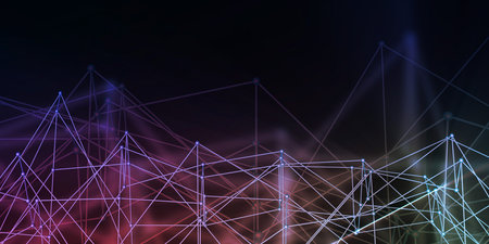 An abstract representation of a colorful network of nodes is showcased, emphasizing connection and technology through vibrant lines.