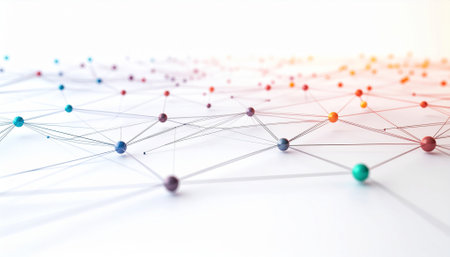 Colorful network connections represented by vibrant dots and lines illustrating collaboration and communication in a digital environment