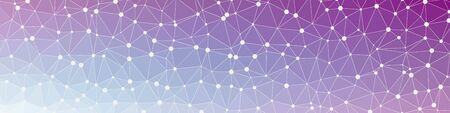 Abstract purple and blue digital data social network communication horizontal background. Connection polygonal structure. AI generative illustration.