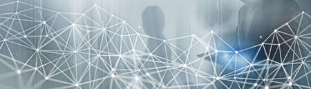 Abstract technology background. Network connection structure with dots and lines. Big data visualization.