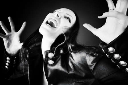 Goth woman horror portrait. Black and white.