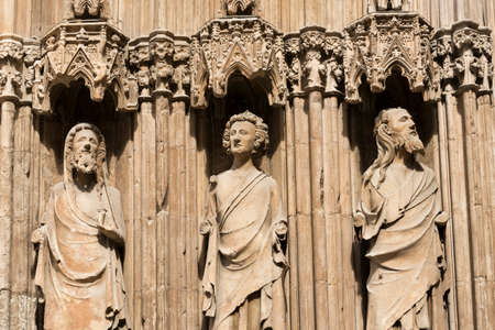 Valencia (Spain), exterior of the medieval cathedral, in gothic style: statues