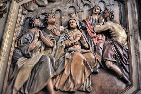 San Francesco bas relief in Santa Croce cathedral in Florence, Italy