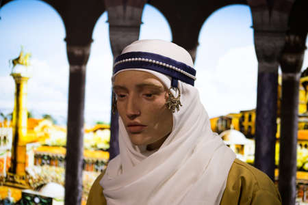 Kyiv, Ukraine 09.01.2020: A wax sculpture of the varangian a Scandinavian warrior