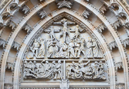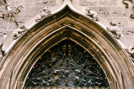 Prague Castle - Gothic architecture of st. Vitus cathedral back door. Czech Republic