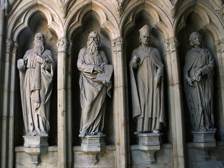 The figures of saints on the Catholic cathedral
