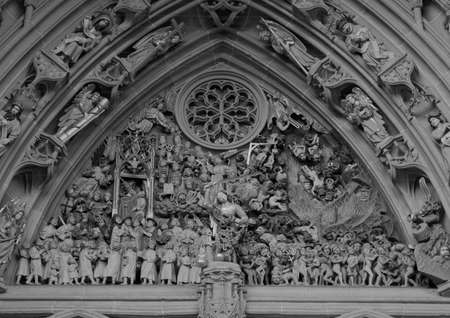BERN, SWITZERLAND - May 03, 2009: Over the main portal of cathedral is one of the most complete Late Gothic sculpture collections in Europe