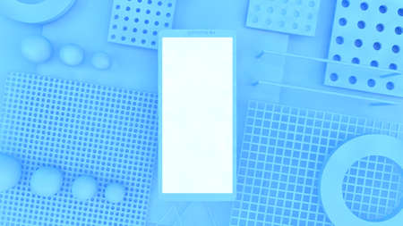 Smartphone 3d illustration. Online entertainment. Network. Social media. Abstract shapes. 3d rendering. Place for text. Trendy pastel color. Pastel blue.