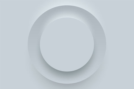 Neumorphic circular background with square concentric elements. Minimal abstract clean paper 3d design template. Concentric circular neumorphic frame banner. Realistic paper surface. Vector