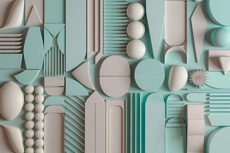 This artistic image features abstract geometric shapes in vivid colors and soft shadows, perfect for modern design projects, digital art, or creative presentations.