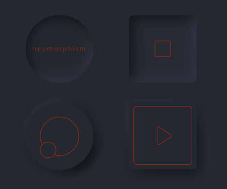 Geometric buttons black neumorphism design elements. High tech style for usability app vector.