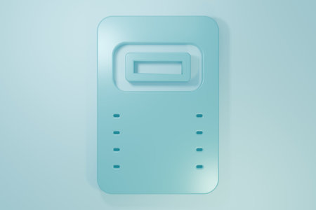 Blue shield icon isolated on blue background. Minimalism concept. 3D render illustration.