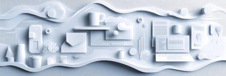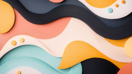 3d rendering abstract wavy background with colorful paper cut shapes.