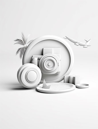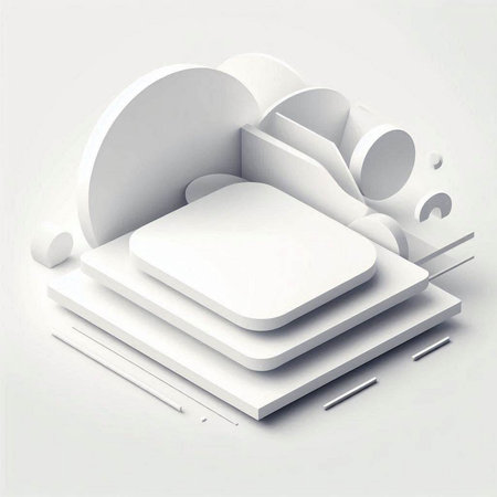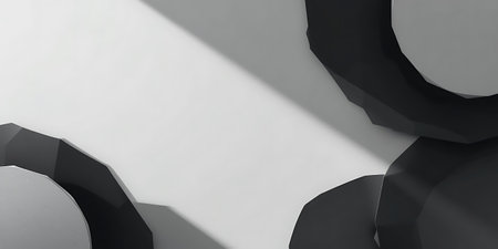 Abstract 3d rendering of geometric shapes in black and white colors. Minimal background design.