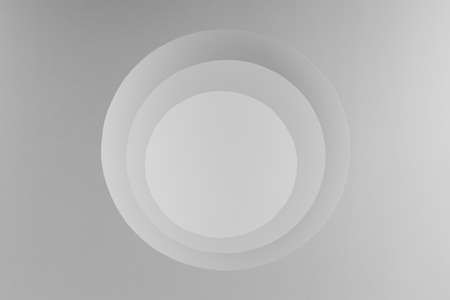 Abstract white gray tunnel of white circles with perspective, shadows, minimalistic stage in simple geometric style.