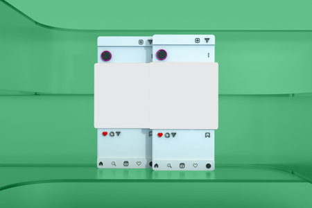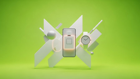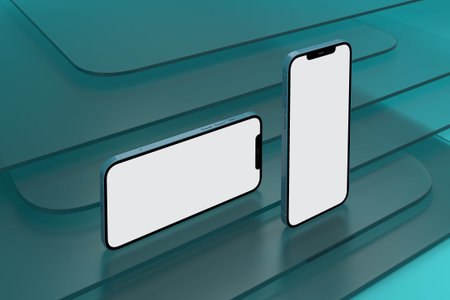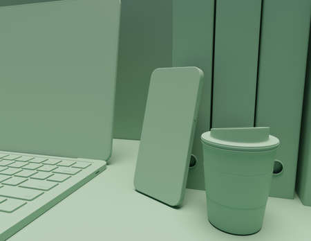 Smartphone on a green color scene 3D rendering business and technology wallpaper backgrounds