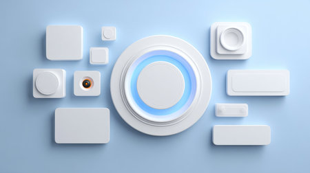 Abstract pastel blue color background. Minimal geometric shapes and lines, top view