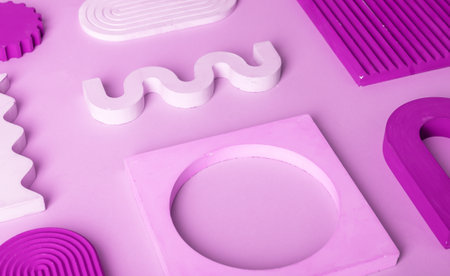 Geometric shapes composition on pastel background. Contemporary art. Simplicity of figures. Angled flatlay. High quality photo