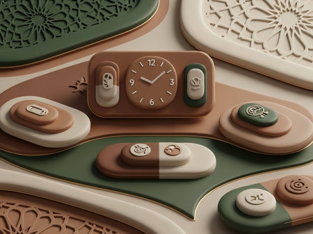 3D render illustration of three purple-blue abstract circular icons with cutouts, isolated on a purple-blue background.