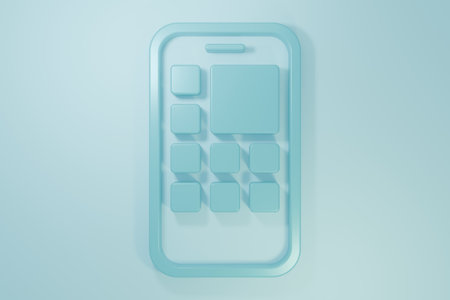 Blue Mobile Apps icon isolated on blue background. Smartphone with screen icons, applications. mobile phone showing screen. Minimalism concept. 3D render illustration.