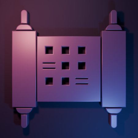 Purple Decree, paper, parchment, scroll icon icon isolated on purple-blue background. Chinese scroll. Minimalism concept. 3D render illustration.