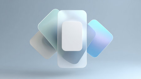 This image features several white, rectangular objects seemingly suspended in mid-air. The objects are set against a blurred, gradient background of blue and purple tones. The style suggests a modern, digital aesthetic, with a focus on clean lines and a minimalistic approach. It can be used for various commercial or editorial applications.