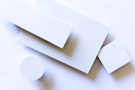Abstract geometric shapes background in white tones, featuring various forms such as squares, rectangles, and circles on a clean surface Ideal for minimalistic designs or modern themes
