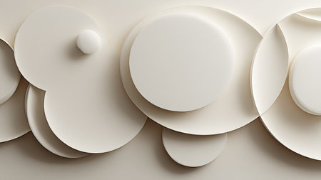 This abstract image features a harmonious arrangement of white circular shapes on a light background, showcasing a modern and minimalist design style.