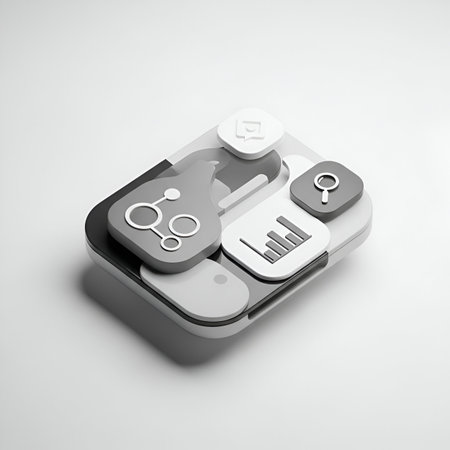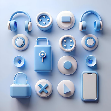 Modern interface buttons and switches are artistically arranged on a subtle background, emphasizing minimalist and contemporary design aesthetics.
