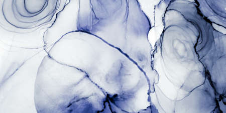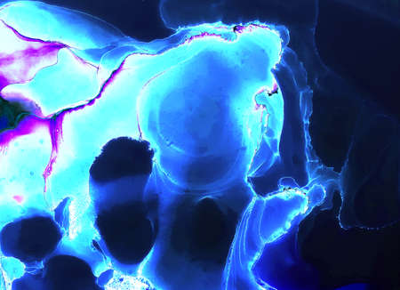 Abstract background in blue color, hand drawn alcohol painting, liquid ink technique