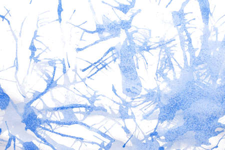 Abstract image of white splash on blue background. Watercolor spatter and drops of colors, similar to chemical reaction