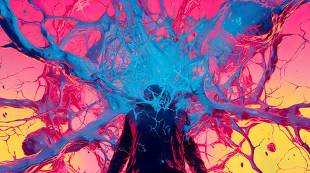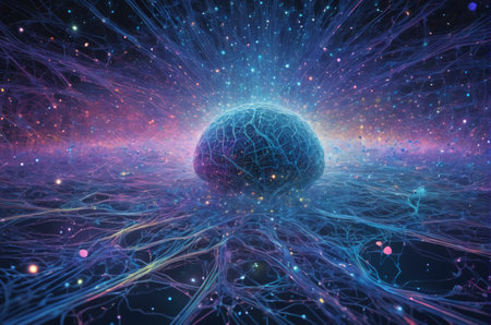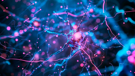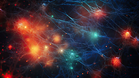 Neural network connections shown with bright colors and glowing synapses in a futuristic artistic style