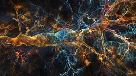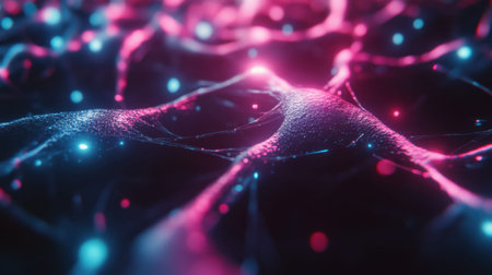 This abstract image showcases colorful neural connections and structures, featuring vibrant lights and intricate patterns that evoke a sense of depth and exploration.