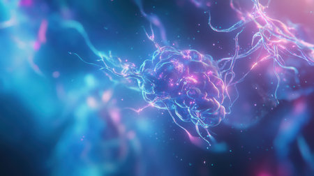 Explore the microscopic wonders of neural networks with this detailed morphism illustration. The glowing proteins and neural connections symbolize the complexity of our biological systems.