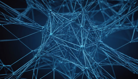 Abstract representation of a neural network with interconnected nodes and lines