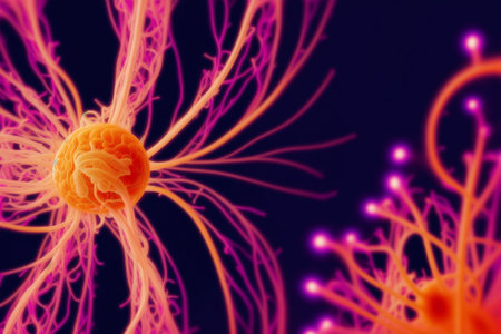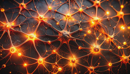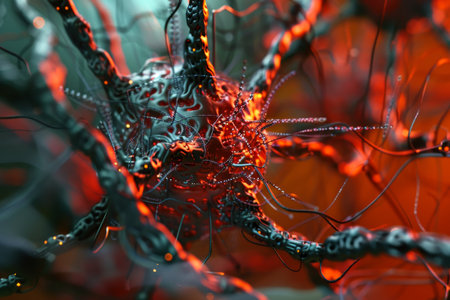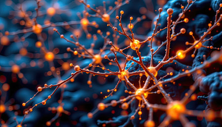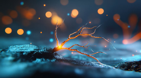 Stunning neurobiology concept with axons and dendrites lit in vivid orange glow